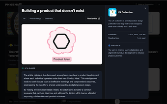 PM Daily Tab, günlük olarak en iyi ürün yöneticileri ve teknoloji bloglarından derlenmiş okumalar sunar. Ayrıca, yapay zeka tarafından üretilen özetler ve anahtar içgörüler ile okuyucuların neyi okuyacaklarına hızlıca karar vermelerine yardımcı olur. Eklenti, daha iyi ürün kararları almak için uygulanabilir çerçeveler ve içgörüler sunarak kullanıcılara değerli bilgiler sağlamaktadır.